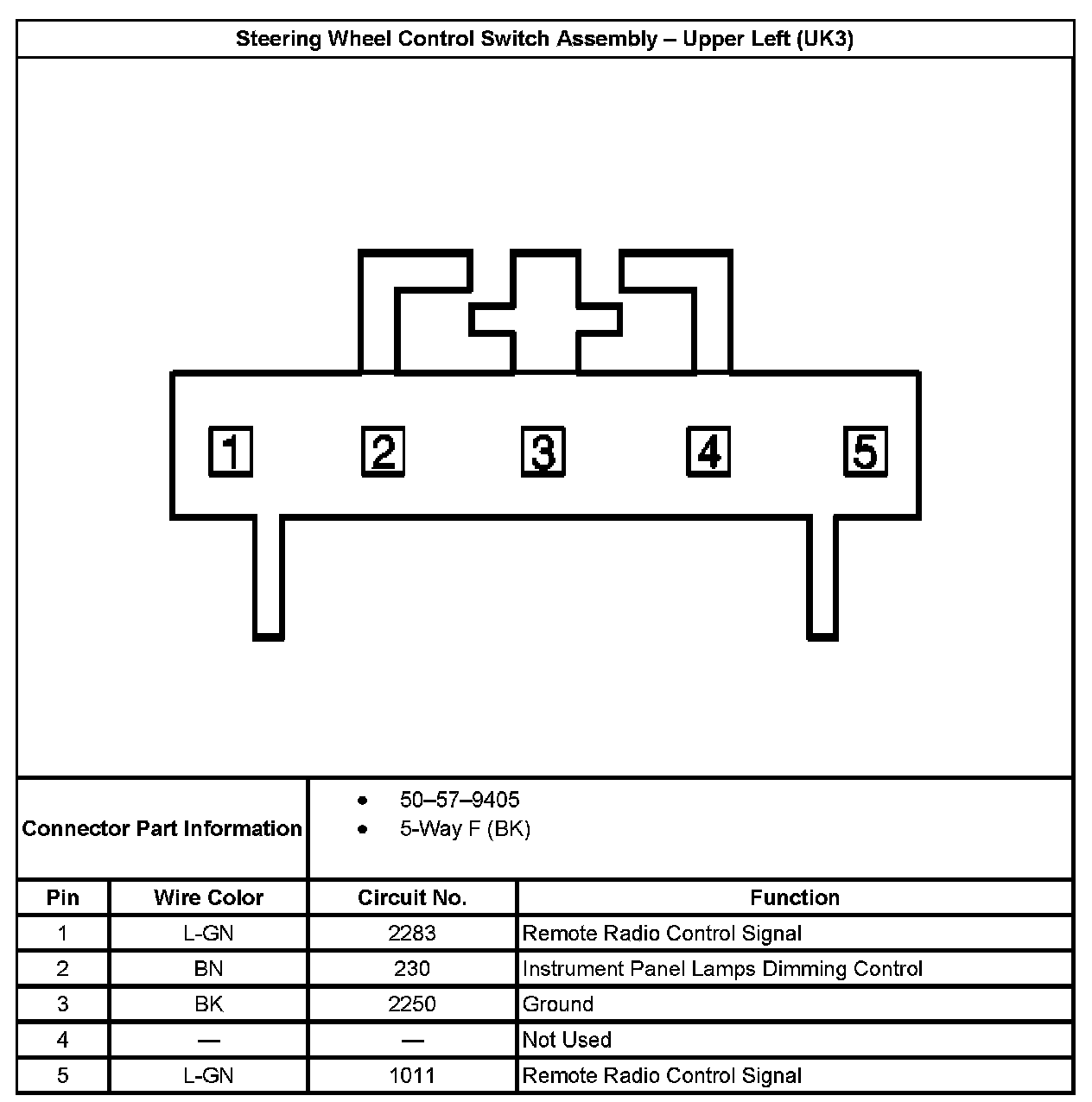 Steering Wheel Control Switch Assembly - Lower Left (With RPO Code UK3):