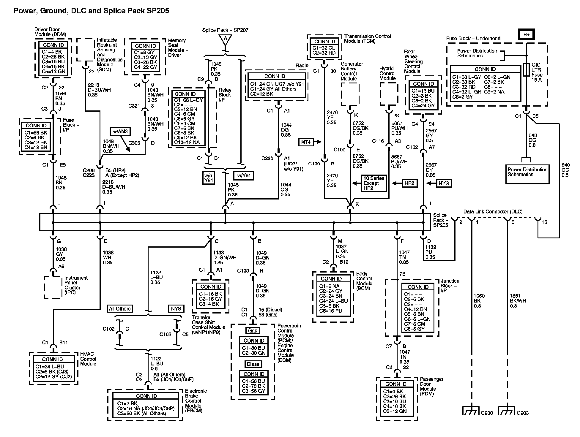 Location: The locations for the Connectors, Grounds, Splices, and grommets shown within these diagrams can be found via their numbers at vehicle locations. Locations