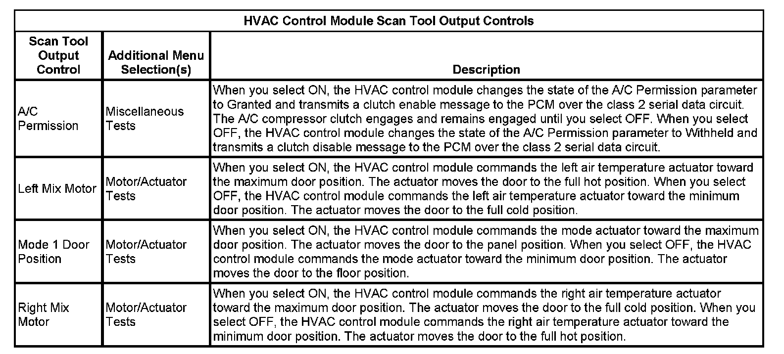 HVAC Control Module Scan Tool Output Controls: