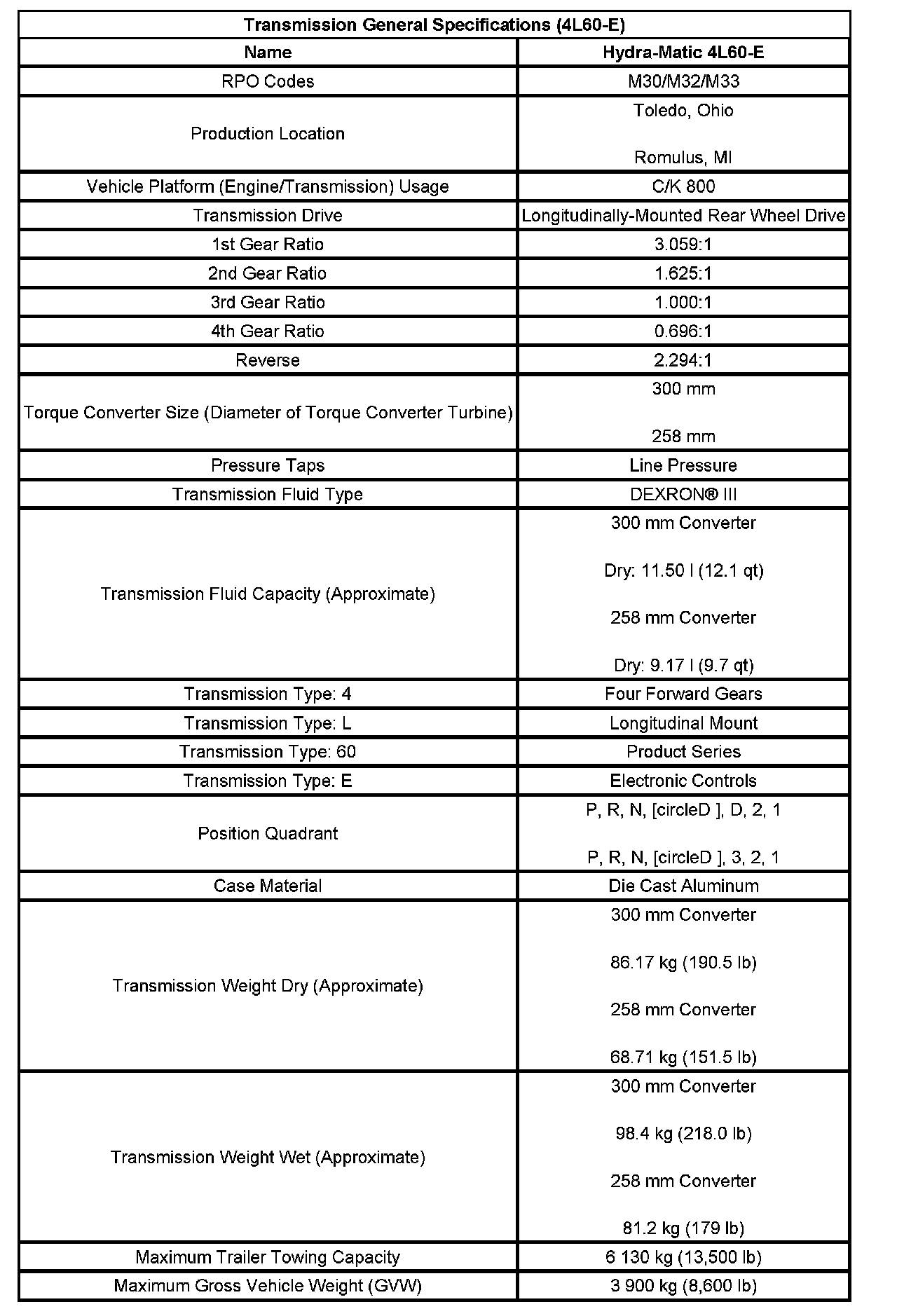 Transmission General Specifications (4L60-E):