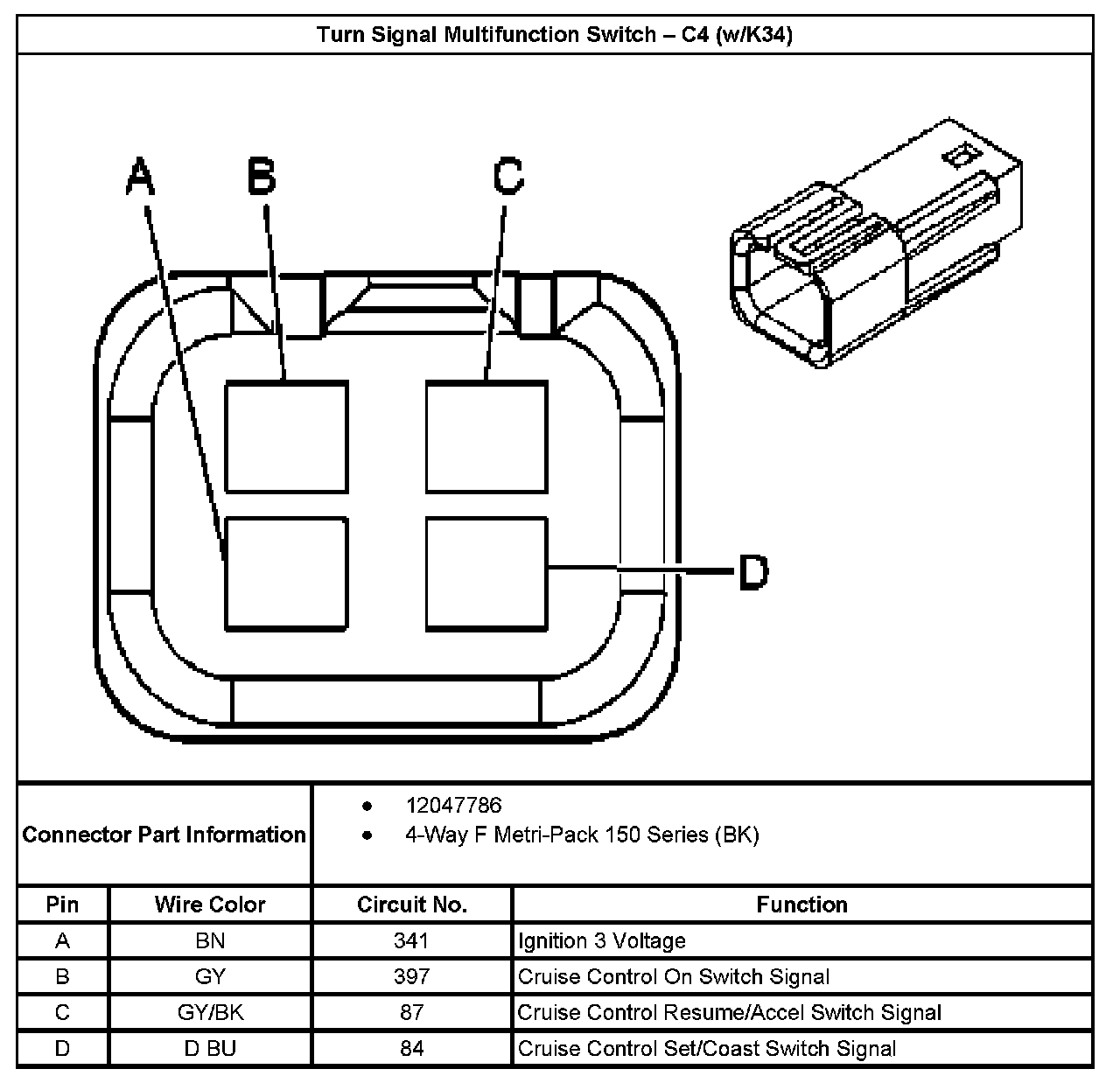 Turn Signal Multifunction Switch - C4 (With RPO Code K34):