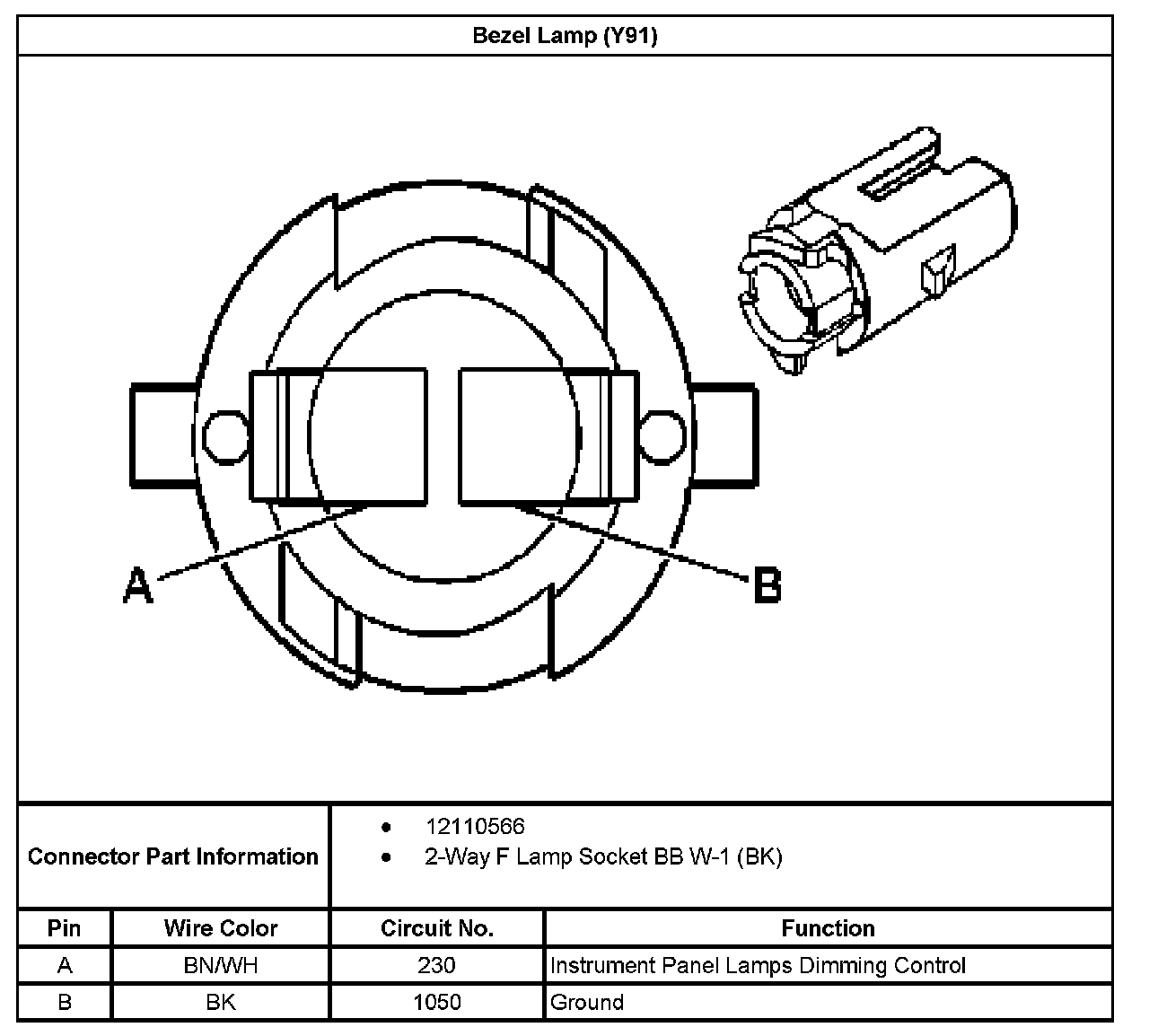 Bezel Lamp (With RPO Code Y91):