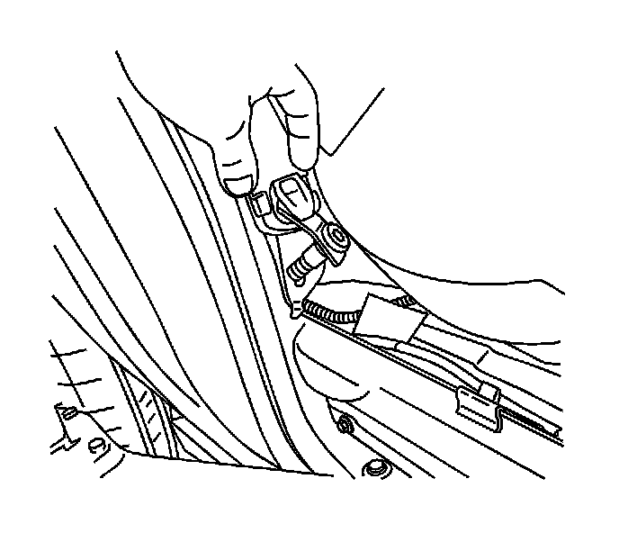6. Connect the electrical connector from the seat to the harness behind the quarter trim panel.