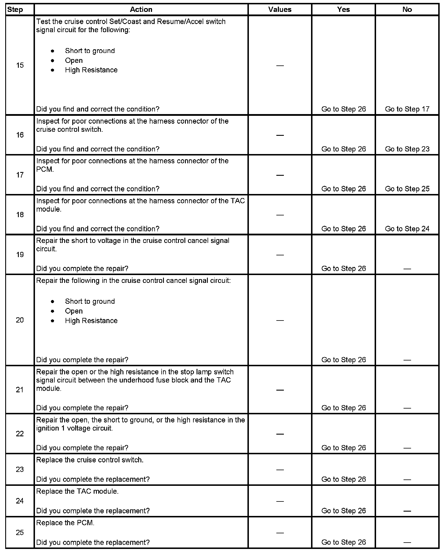 26. DTCs will set in the PCM when you perform this diagnostic table.