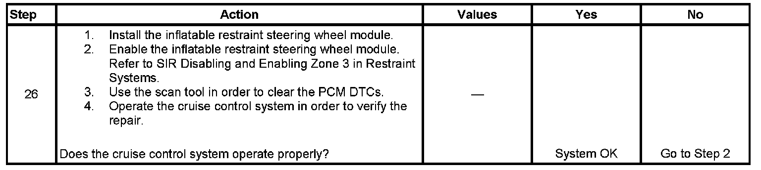 Disable the inflatable restraint steering wheel module when performing this diagnostic table. Refer to SIR Disabling and Enabling Zone 3 in Restraint Systems.