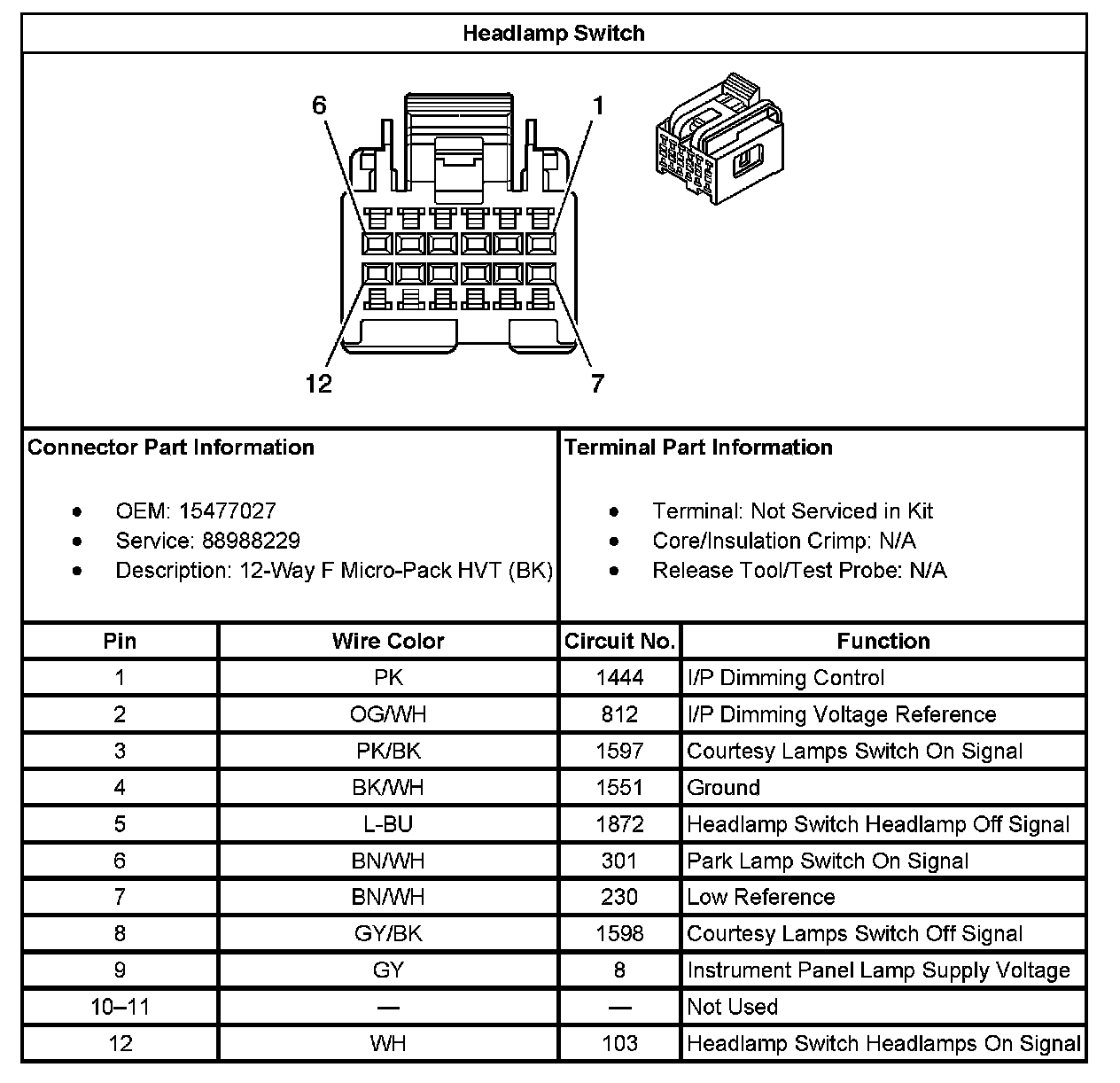 Headlamp Switch: