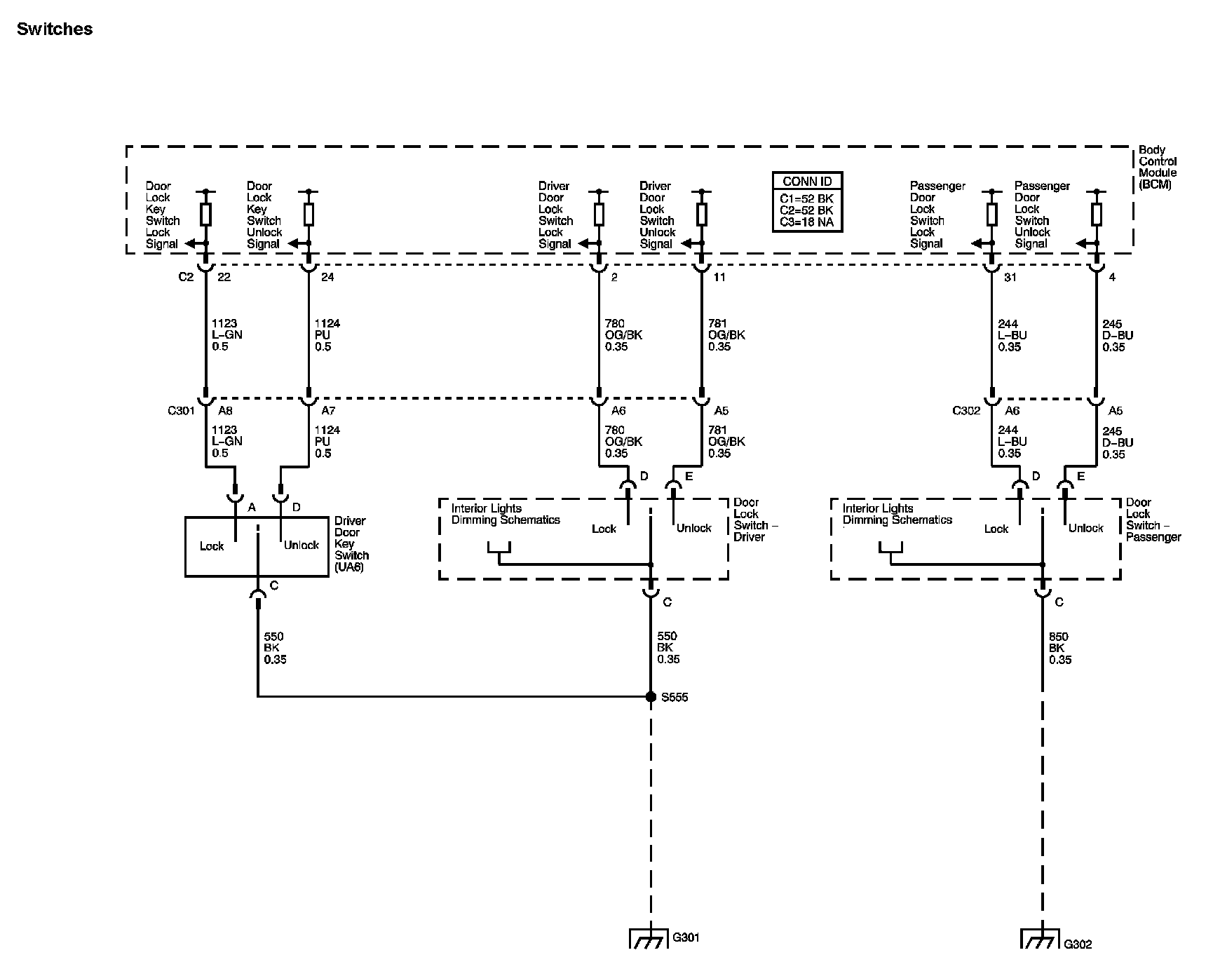 Locations: The locations for the Connectors, Grounds, Splices, and Grommets shown within these diagrams can be found via their numbers at Vehicle Locations. Locations