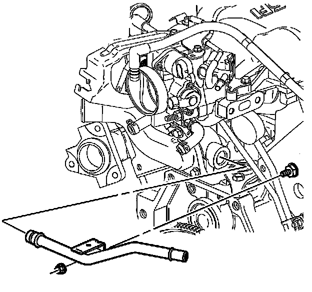 8. Disconnect the heater inlet pipe with heater hose from the lower intake manifold and reposition.