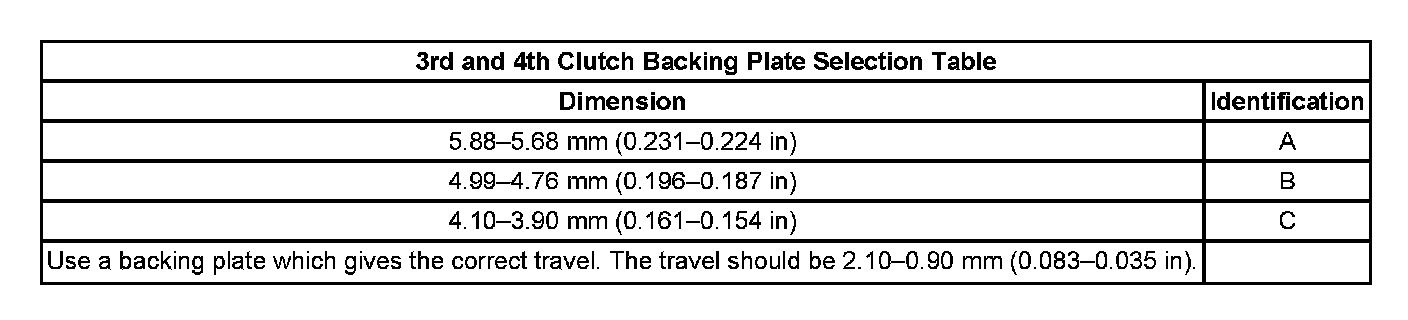 3rd and 4th Clutch Backing Plate Selection Table: