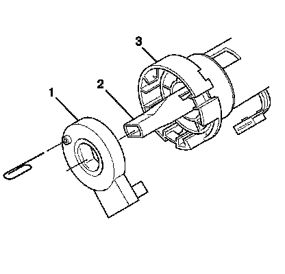 Important: When reusing the sensor (1) you must install a pin into the sensor before it is removed from the steering shaft. By not installing a pin into the sensor it will cause the sensor to lose its centering position and must be discarded.