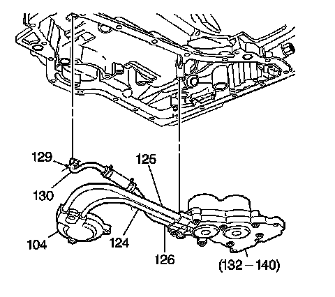 6. Install the lube oil pipe (130) into the case at the lube hole for the front differential carrier internal gear.