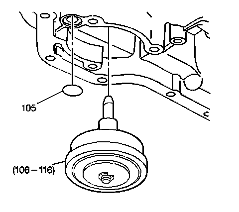 1. Install the manual 2-1 band servo cover gasket (105) into the case. Lubricate the manual 2-1 band servo cover gasket with automatic transmission fluid.