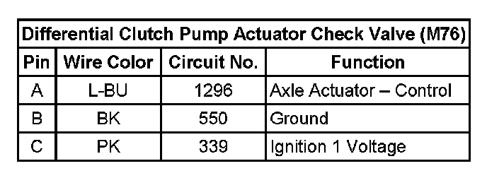 Differential Clutch Pump Actuator Check Valve (M76):