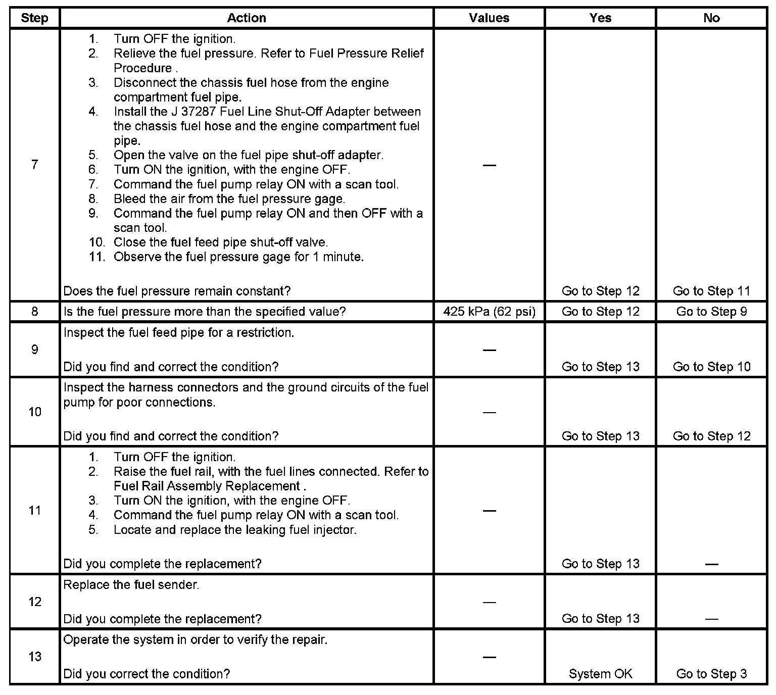 The fuel tank stores the fuel supply. An electric turbine style fuel pump attaches to the fuel sender assembly inside the fuel tank. The fuel pump supplies high pressure fuel through the fuel filter and the fuel feed pipe to the fuel injection system. The fuel pump provides fuel at a higher rate of flow than is needed by the fuel injection system. The fuel pump also supplies fuel to a venturi pump located on the bottom of the fuel sender assembly. The function of the venturi pump is to fill the fuel sender assembly reservoir. The fuel pressure regulator, a part of the fuel sender assembly, maintains the correct fuel pressure to the fuel injection system. The fuel pump and sender assembly contain a flow check valve. the check valve and the fuel pressure regulator maintain fuel pressure in the fuel feed pipe and the fuel rail in order to prevent long cranking times.