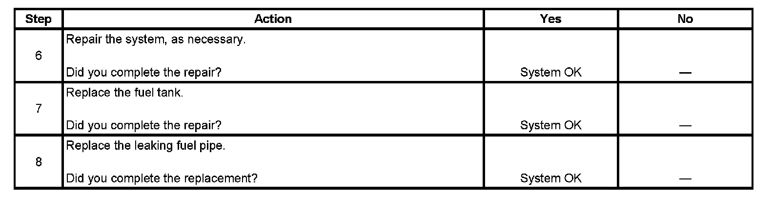4. This step tests for fuel leaks below the fuel tank fuel level.