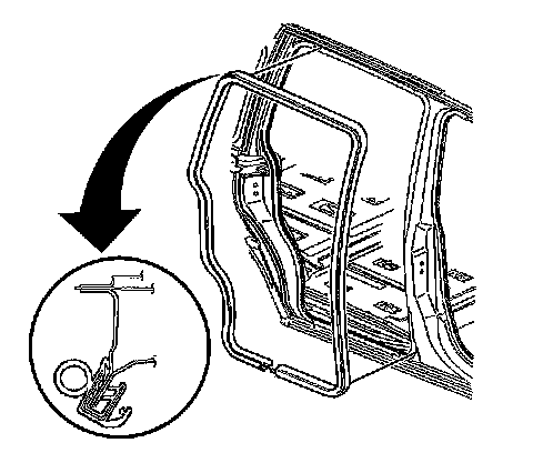 1. Install the sliding door opening weatherstrip to the sliding door pinchweld flange.
