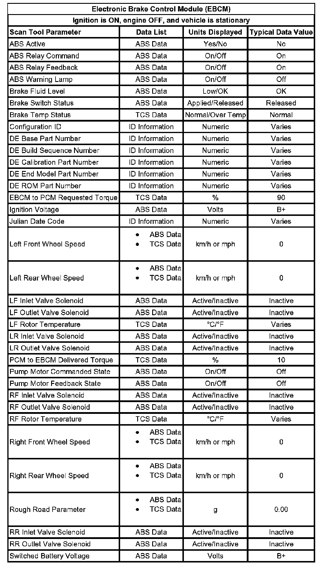 Scan Tool Data List