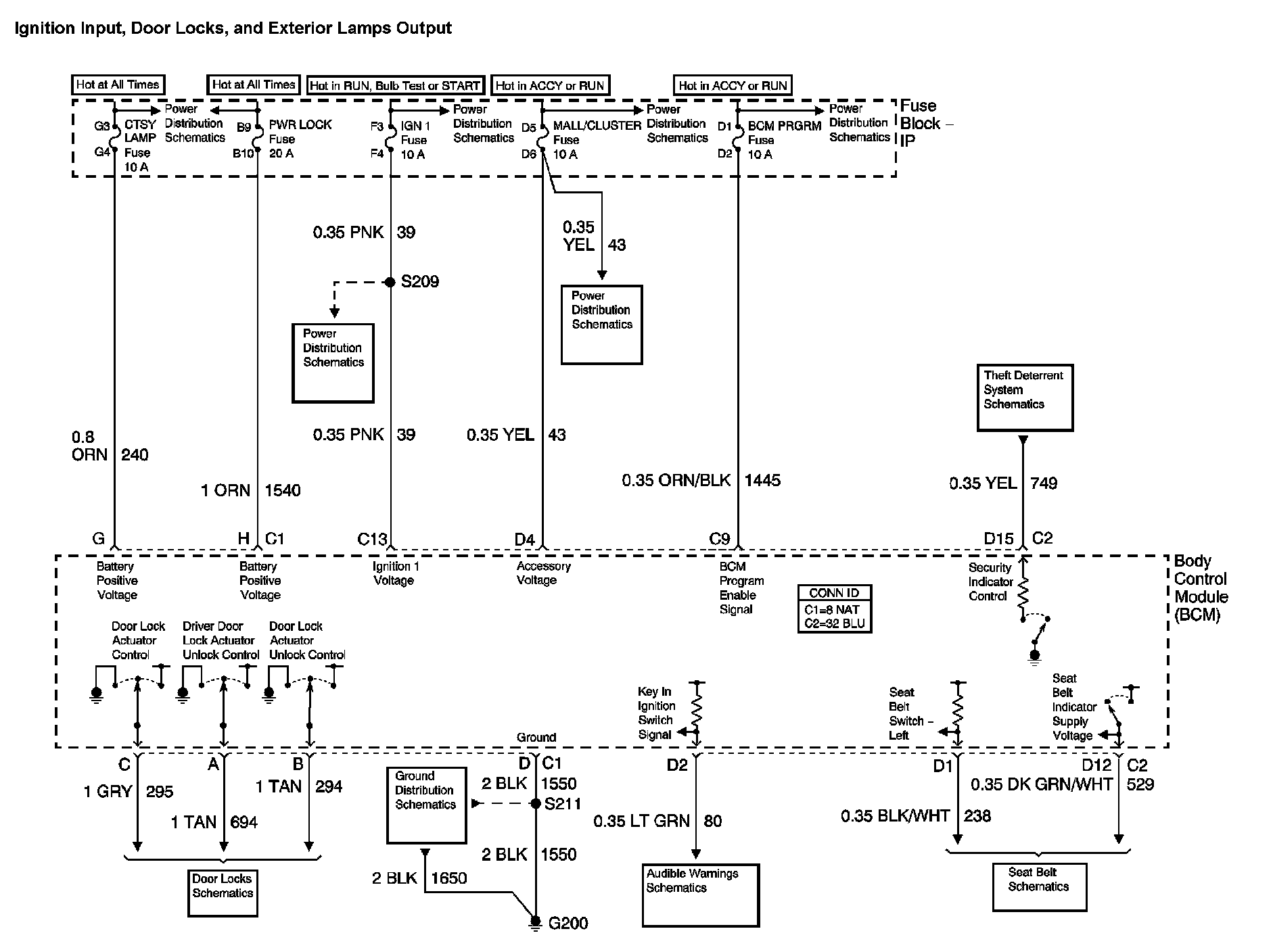 The locations for the Connectors, Grounds, Splices, and Grommets shown within these diagrams can be found via their at Vehicle Locations.