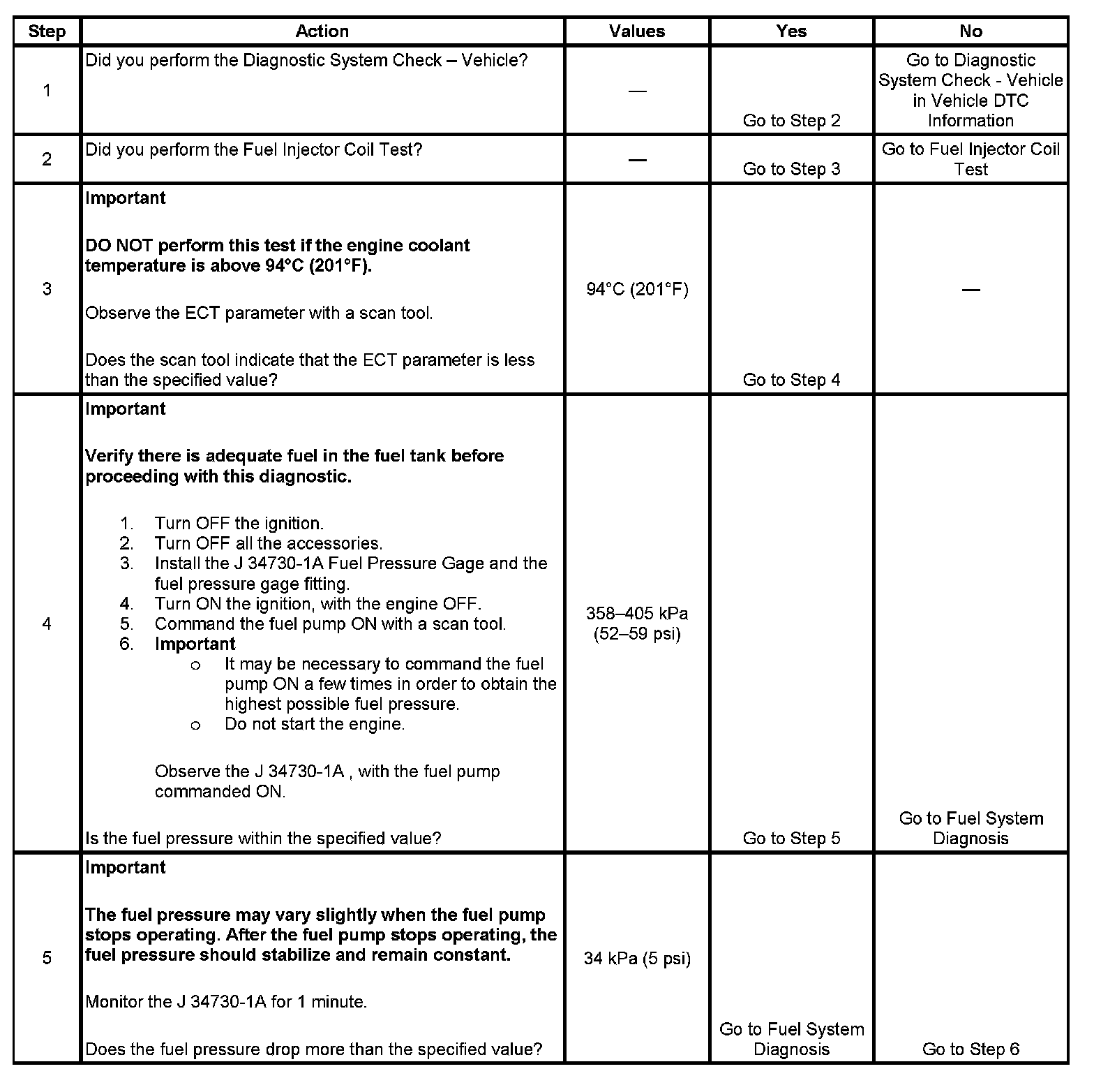 3. The engine coolant temperature must be below the operating temperature in order to avoid irregular fuel pressure readings due to hot soak fuel boiling.