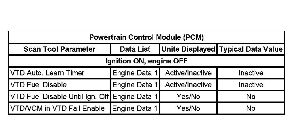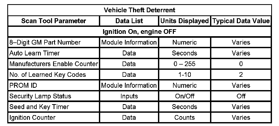 Scan Tool Data List - Antitheft System