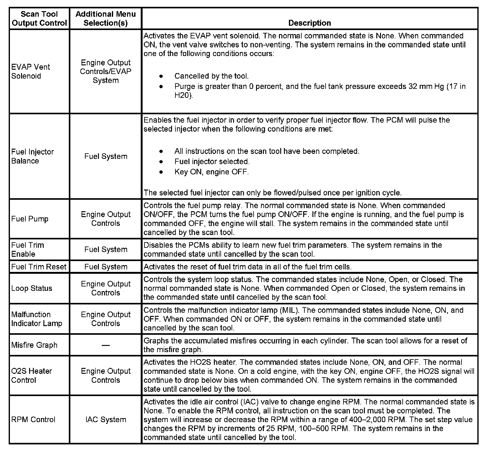 Scan Tool Output Controls