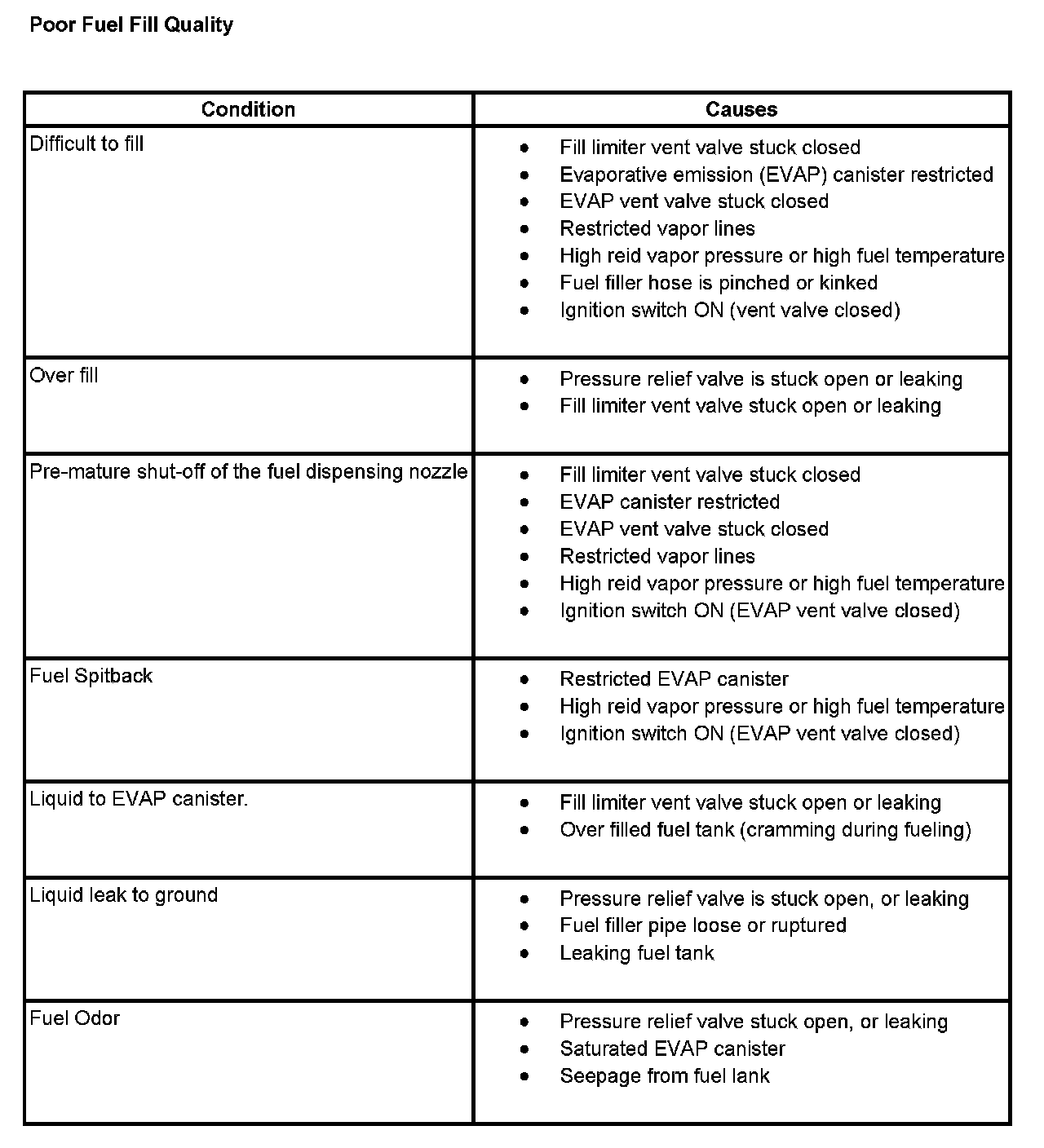 Poor Fuel Fill Quality
