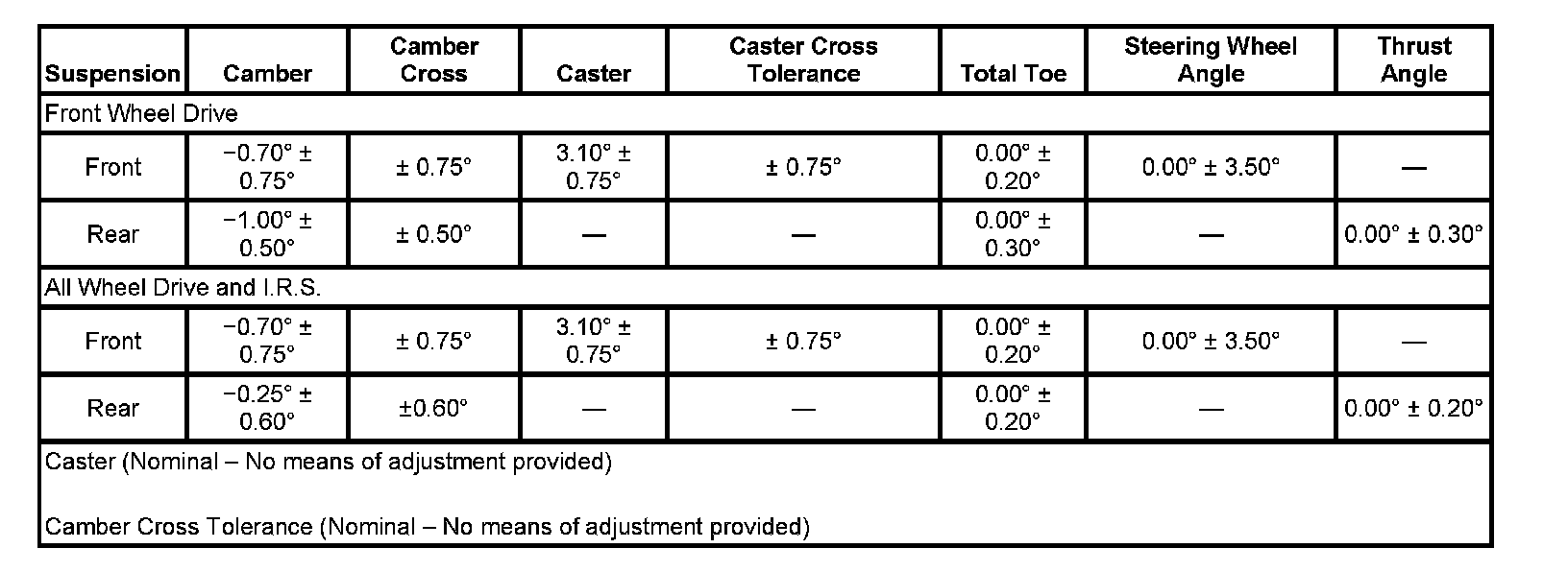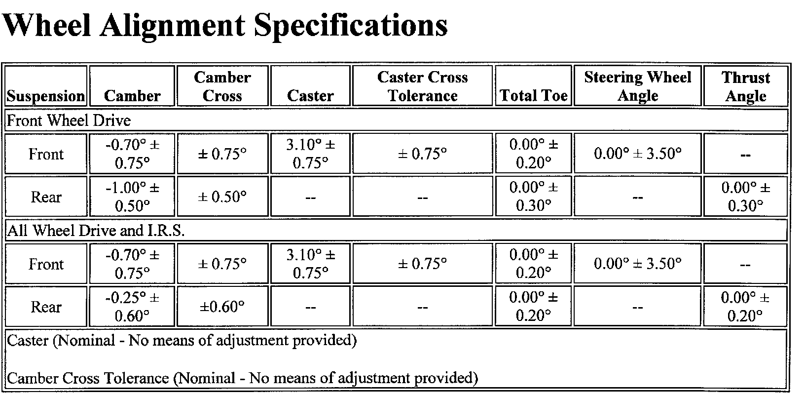 Wheel Alignment Specifications