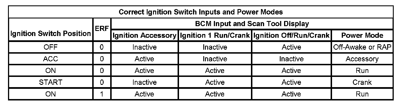 Correct Ignition Switch Inputs And Power Modes: