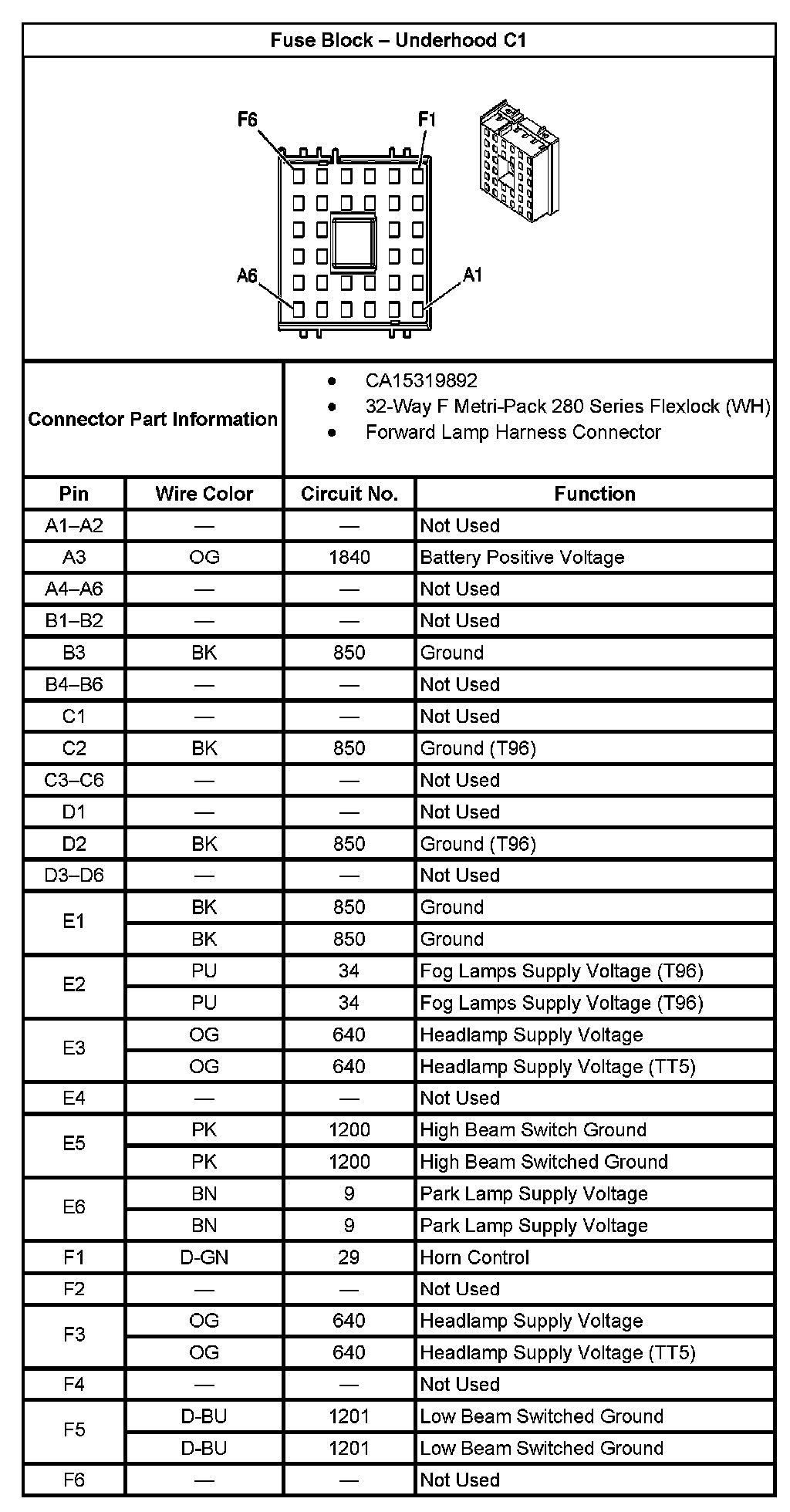 Fuse Block - Underhood C1 Part 1: