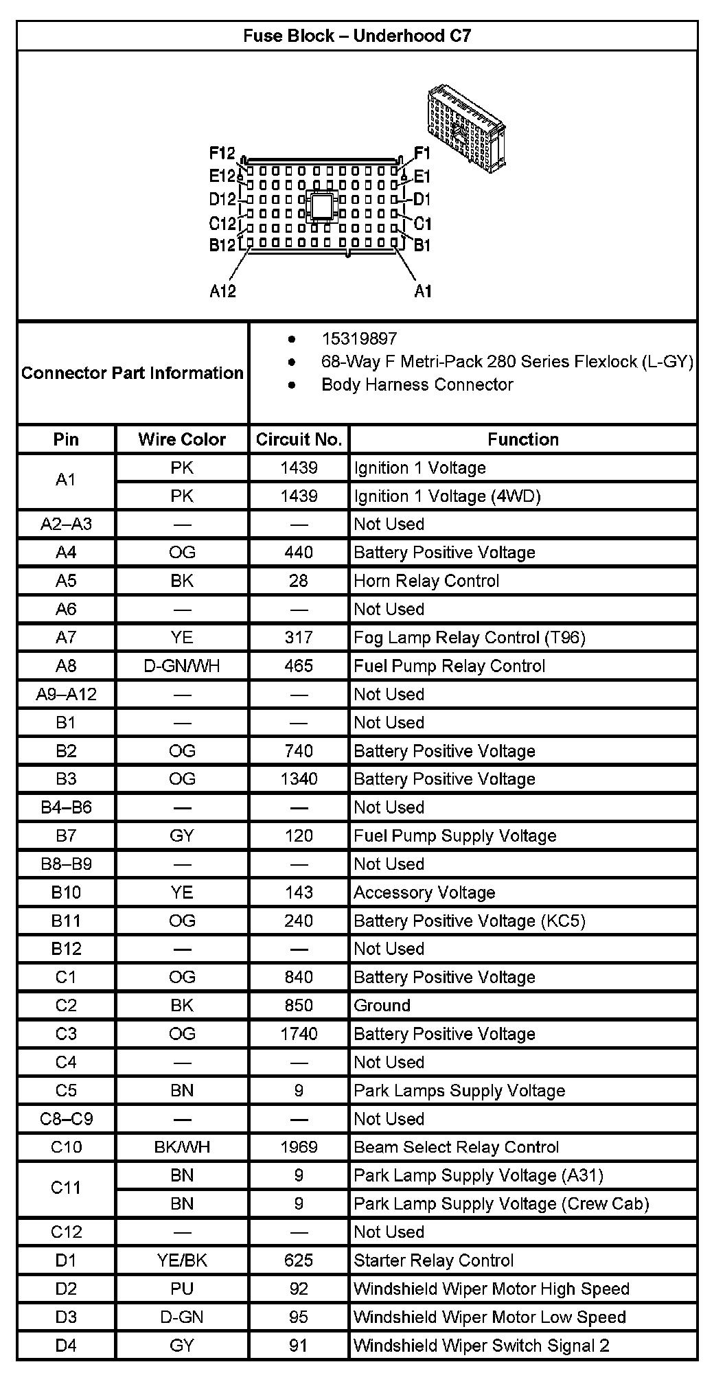 Fuse Block - Underhood C7 (Part 2):