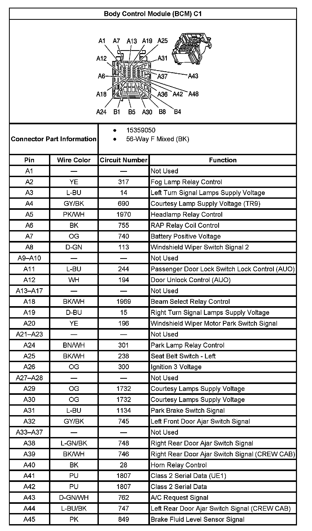 Body Control Module (BCM) C1 (Part 1):