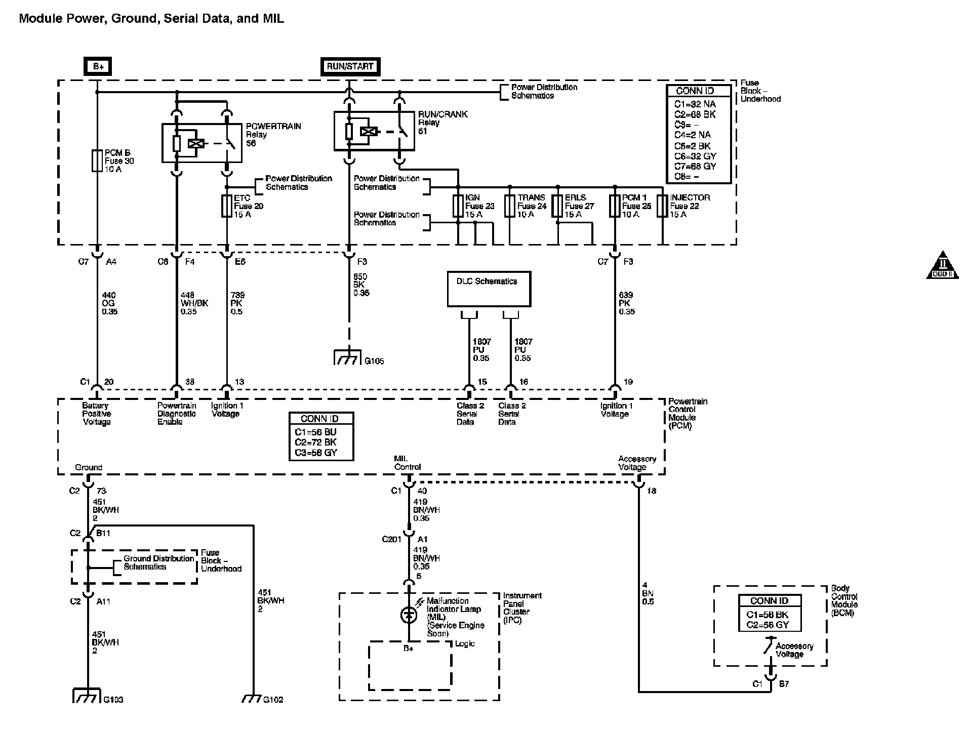 Module Power, Ground, Serial Data, and MIL