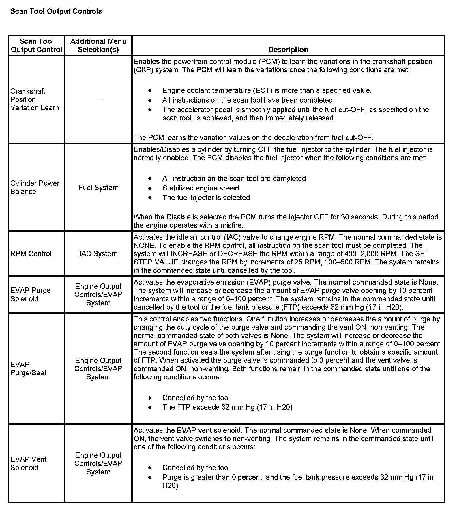 Scan Tool Output Controls