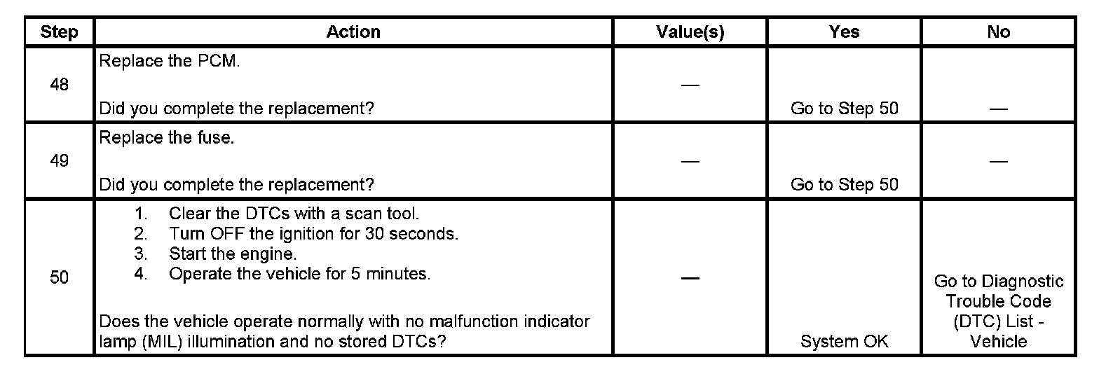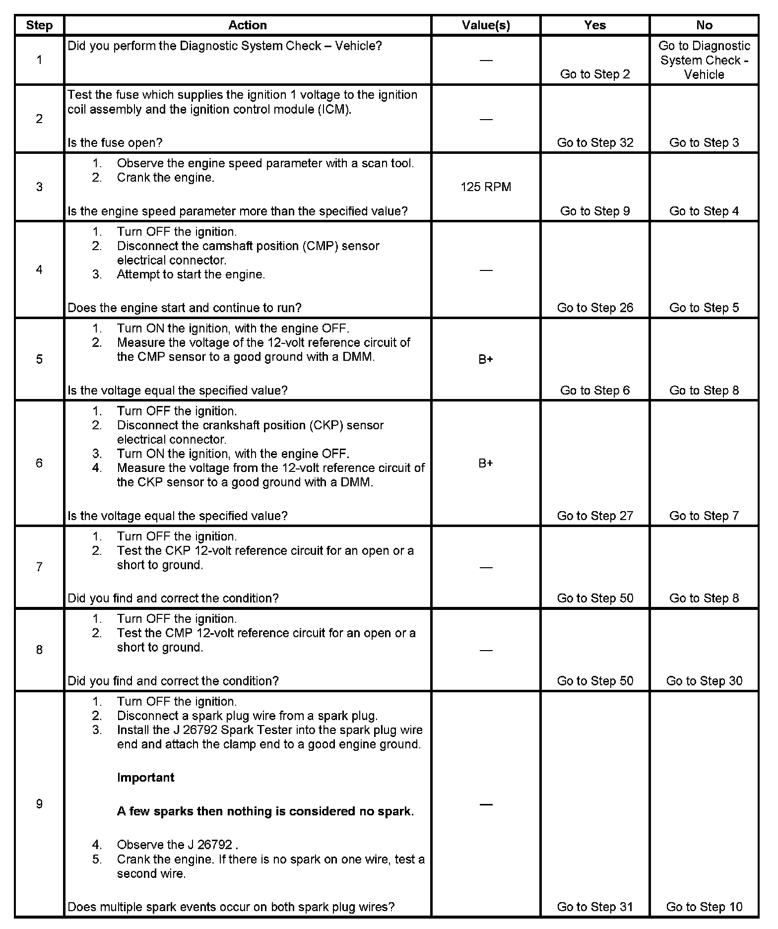 The distributor ignition (DI) system diagnostic table assumes the following conditions: