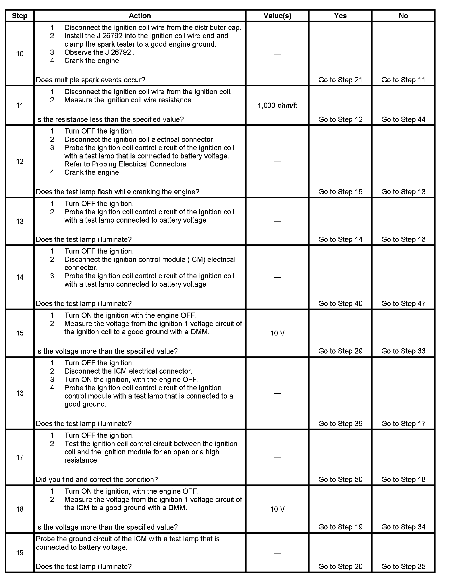 9. This step tests for spark output at more than one spark plug wire. The J 26792 Spark Plug Tester requires a minimum of 25,000 volts to operate.