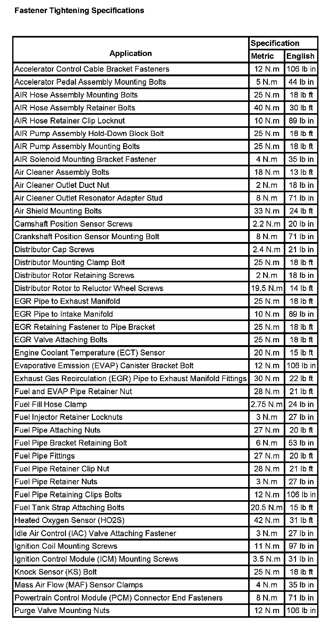 Fastener Tightening Specifications (Part 1):