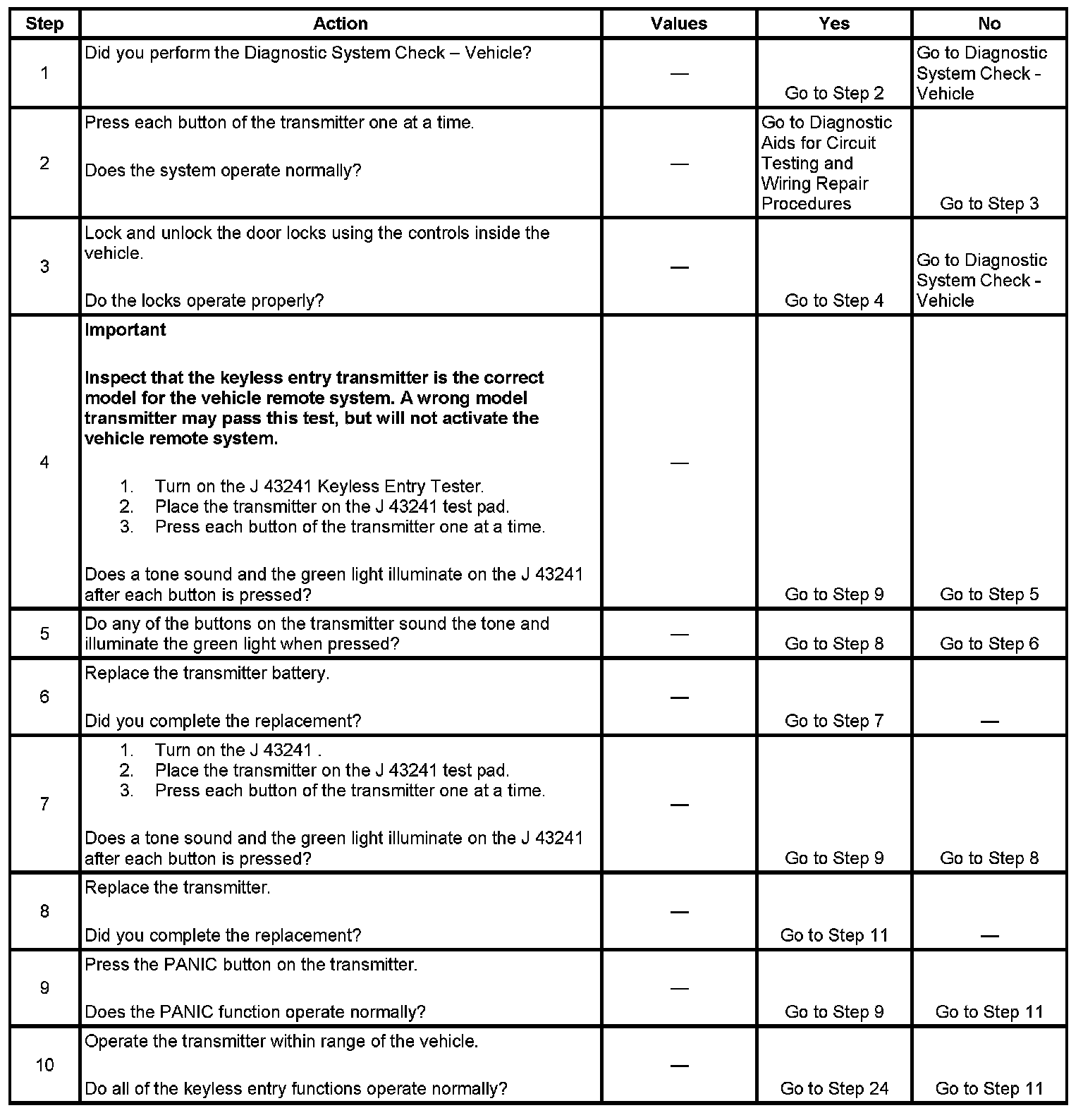 KEYLESS ENTRY SYSTEM INOPERATIVE