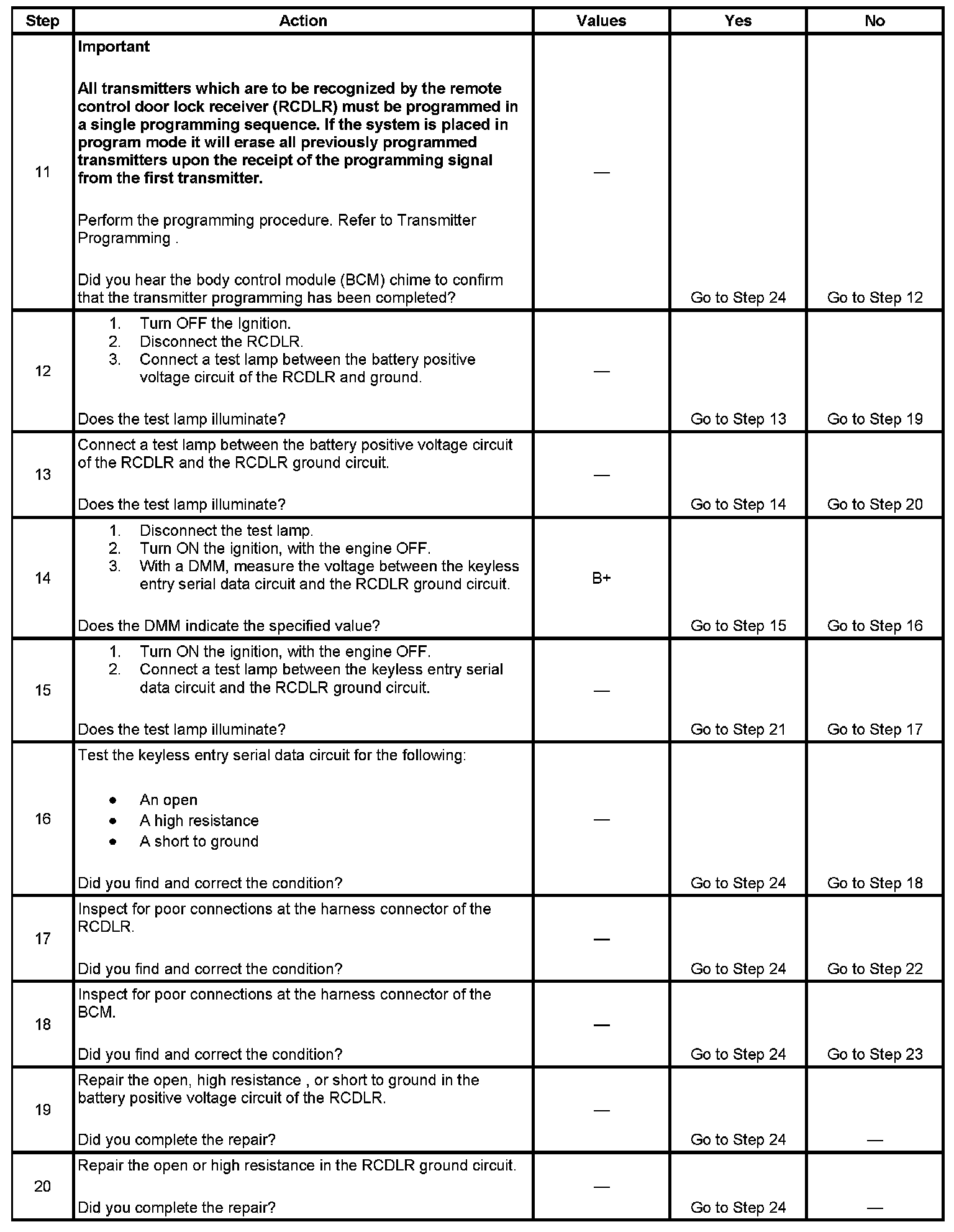 14. A DMM must be used in this step. A test lamp may give incorrect results, testing for B+ supply from the body control module (BCM).