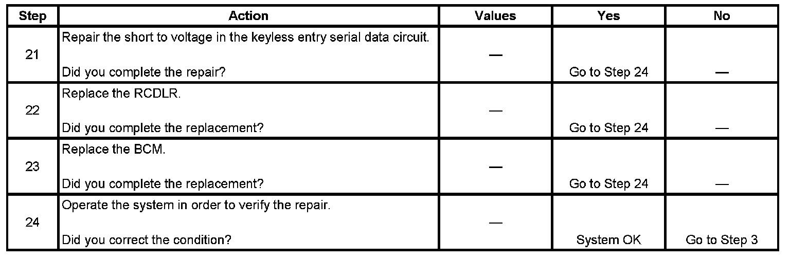 15. An illuminated test lamp at step 16 reveals a short to voltage in the serial data circuit.