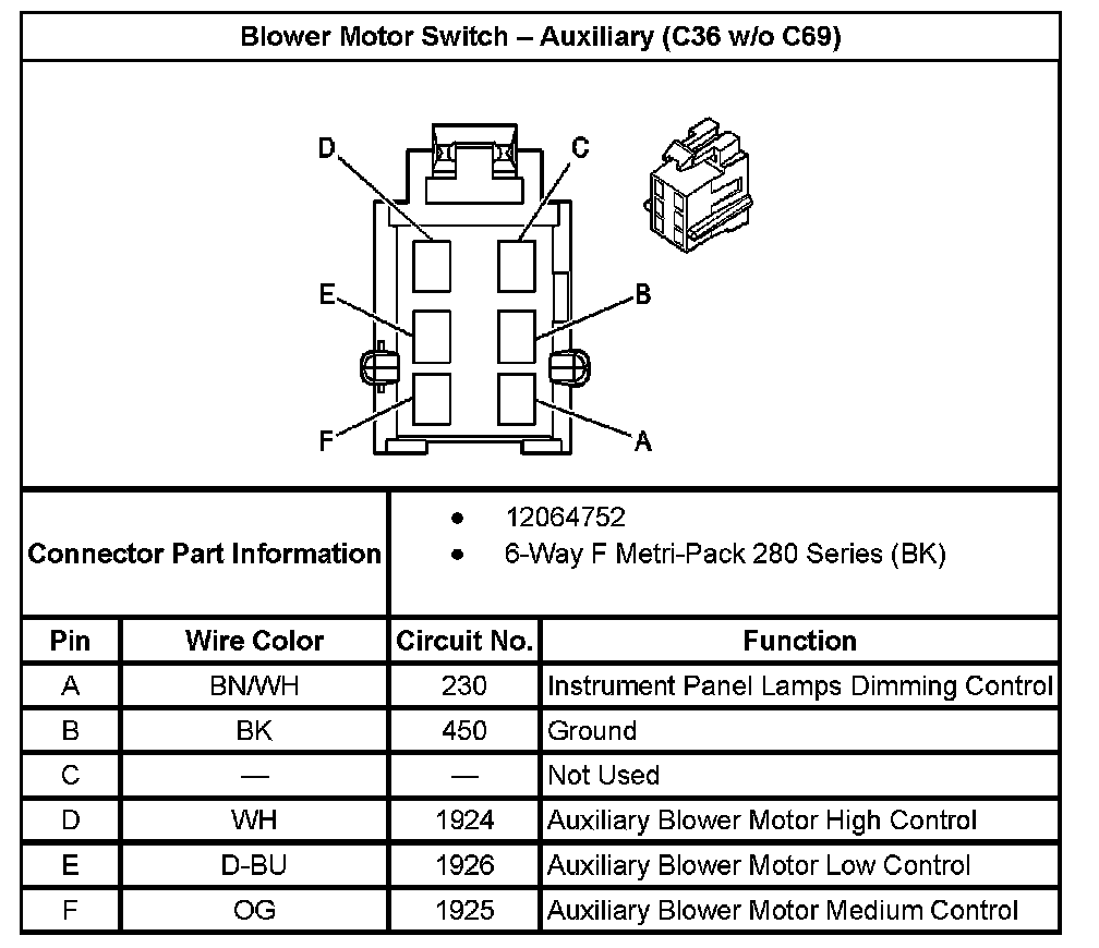 Blower Motor Switch - Auxiliary (C36 Without RPO Code C69):