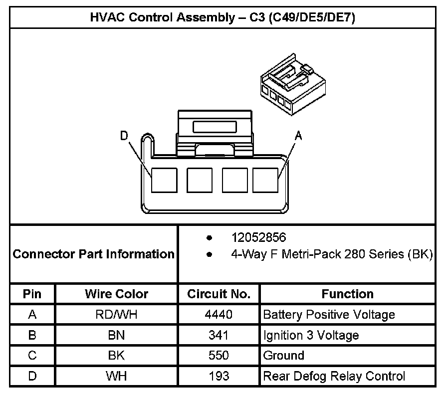 HVAC Control Assembly - C3 (With RPO Code C49/DE5/DE7):