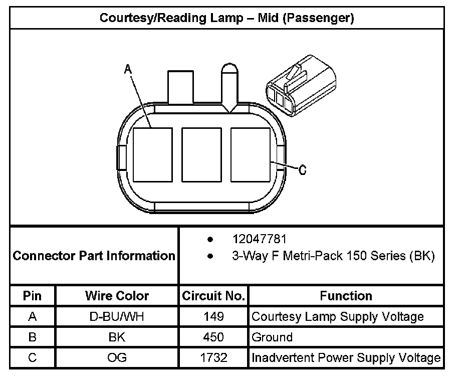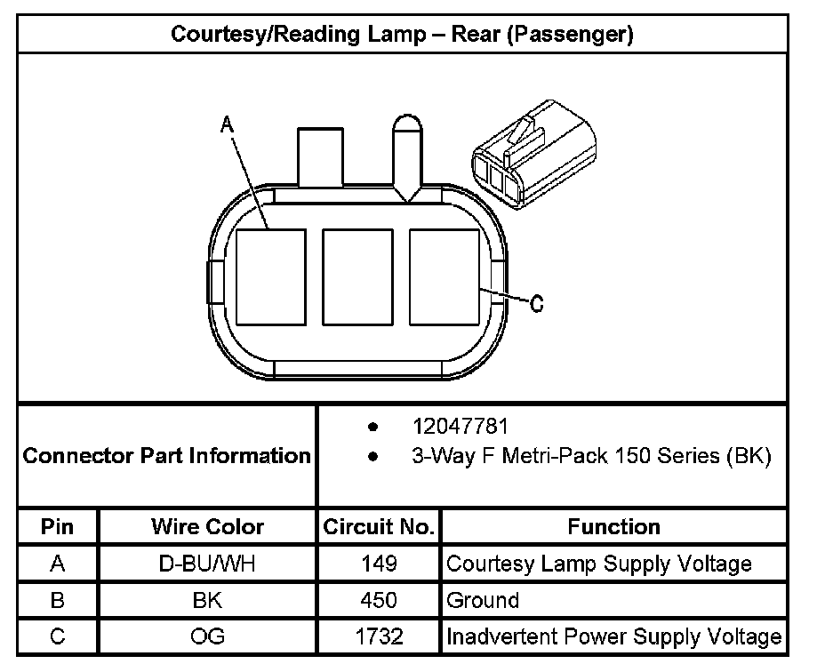 Courtesy/Reading Lamp - Rear (Passenger):