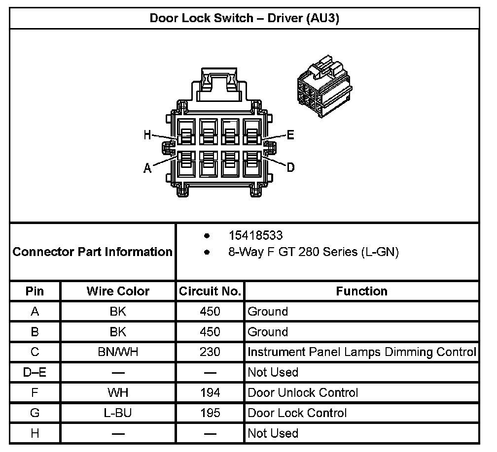Door Lock Switch - Driver (With RPO Code AU3):