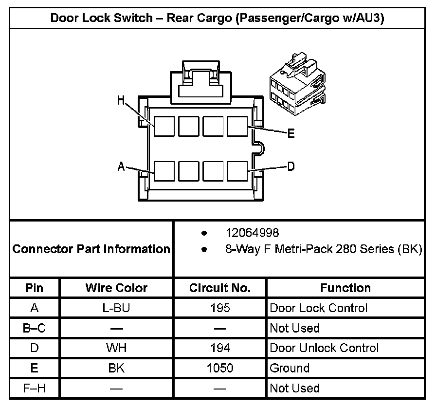Door Lock Switch - Rear Cargo (Passenger/Cargo With RPO Code AU3):