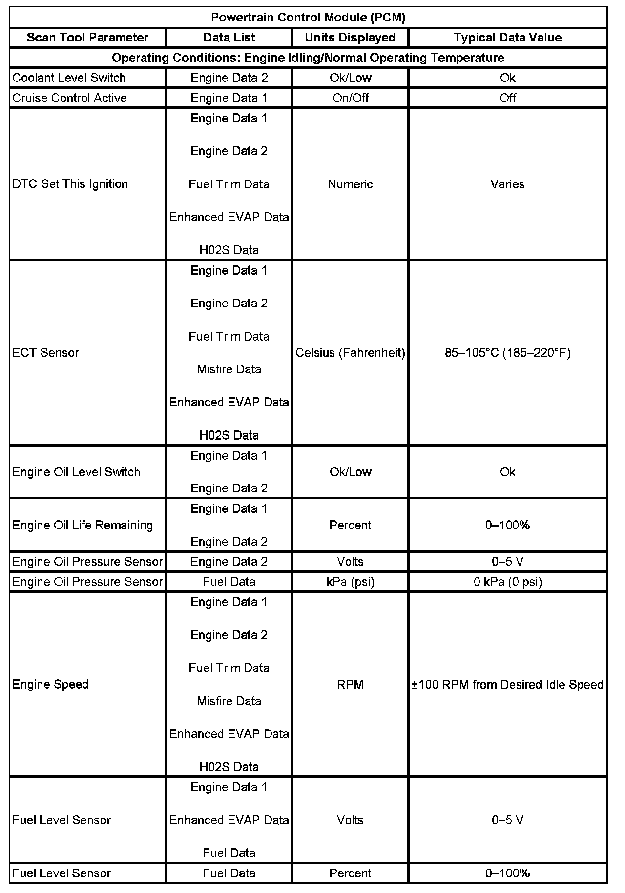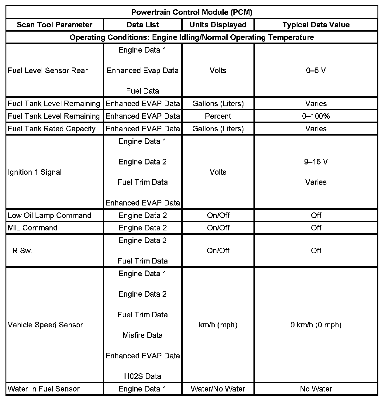 Scan Tool Data List