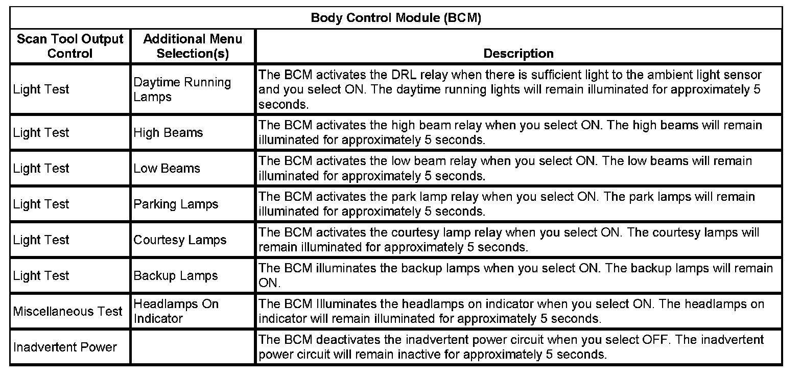 Scan Tool Output Controls