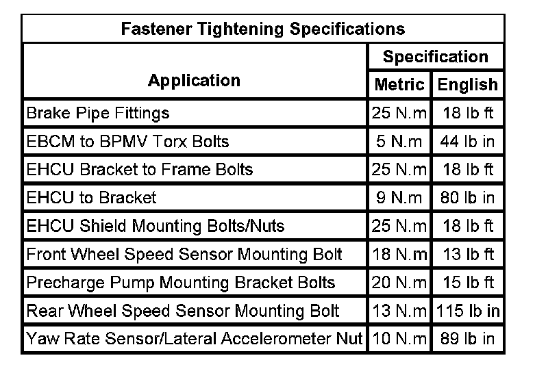 Fastener Tightening Specifications: