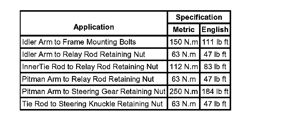 Fastener Tightening Specifications: