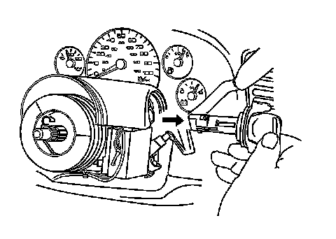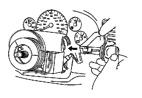 8. Remove the ignition lock cylinder by pulling the cylinder away from the steering column.