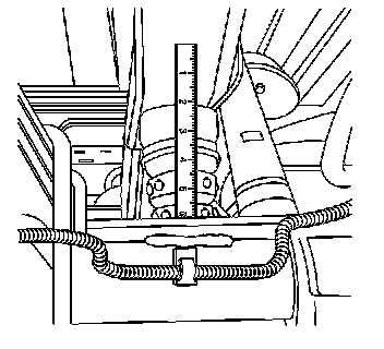 Measure the D height by measuring the distance between the rear axle tube or rear axle bracket on vehicles with 7300 GVW rating and the frame.
